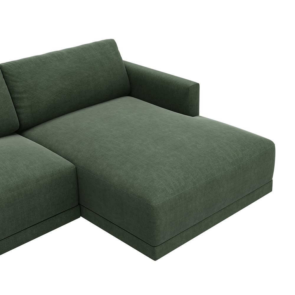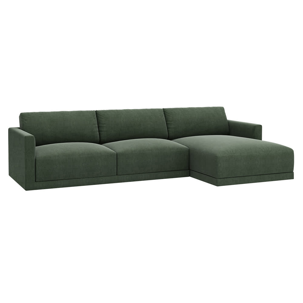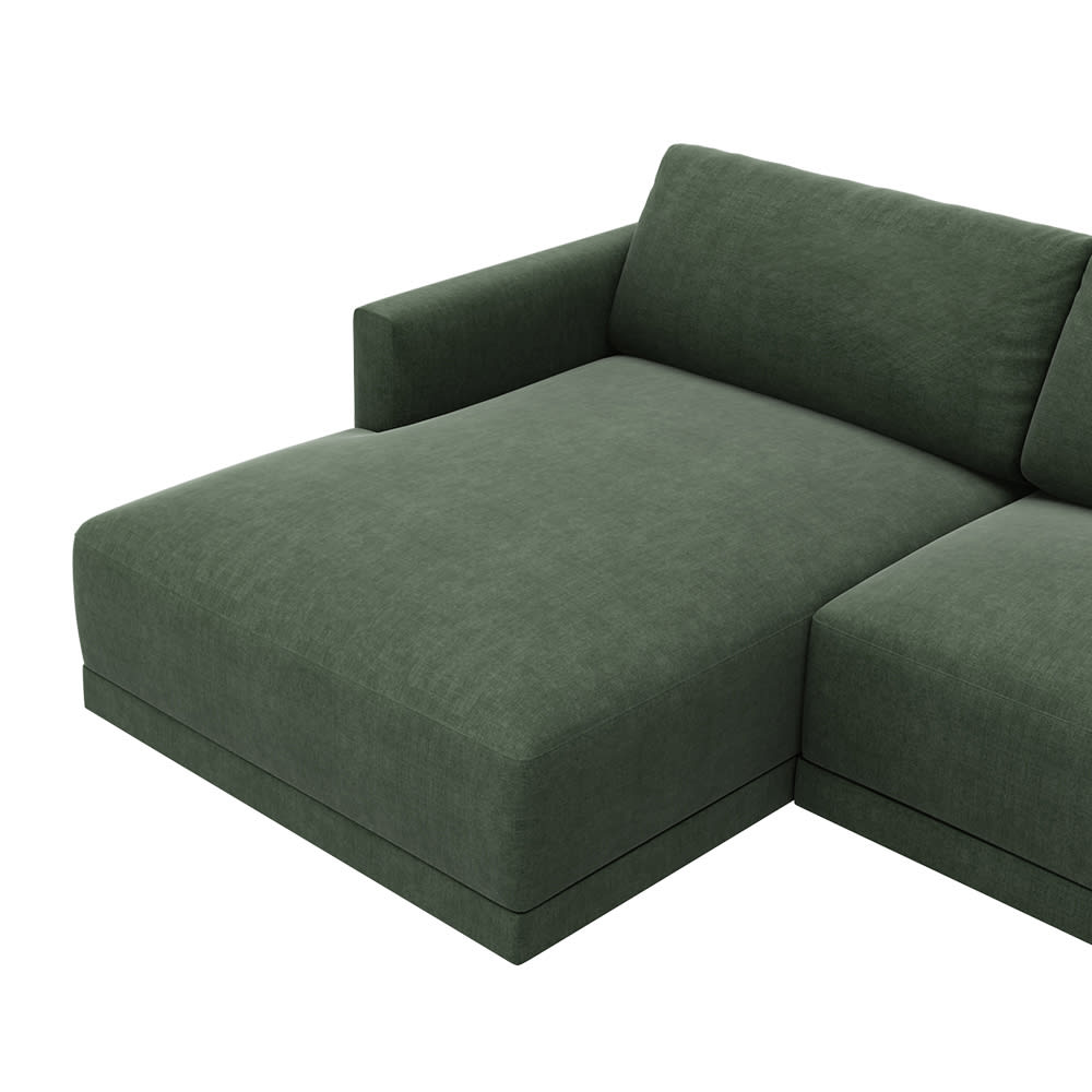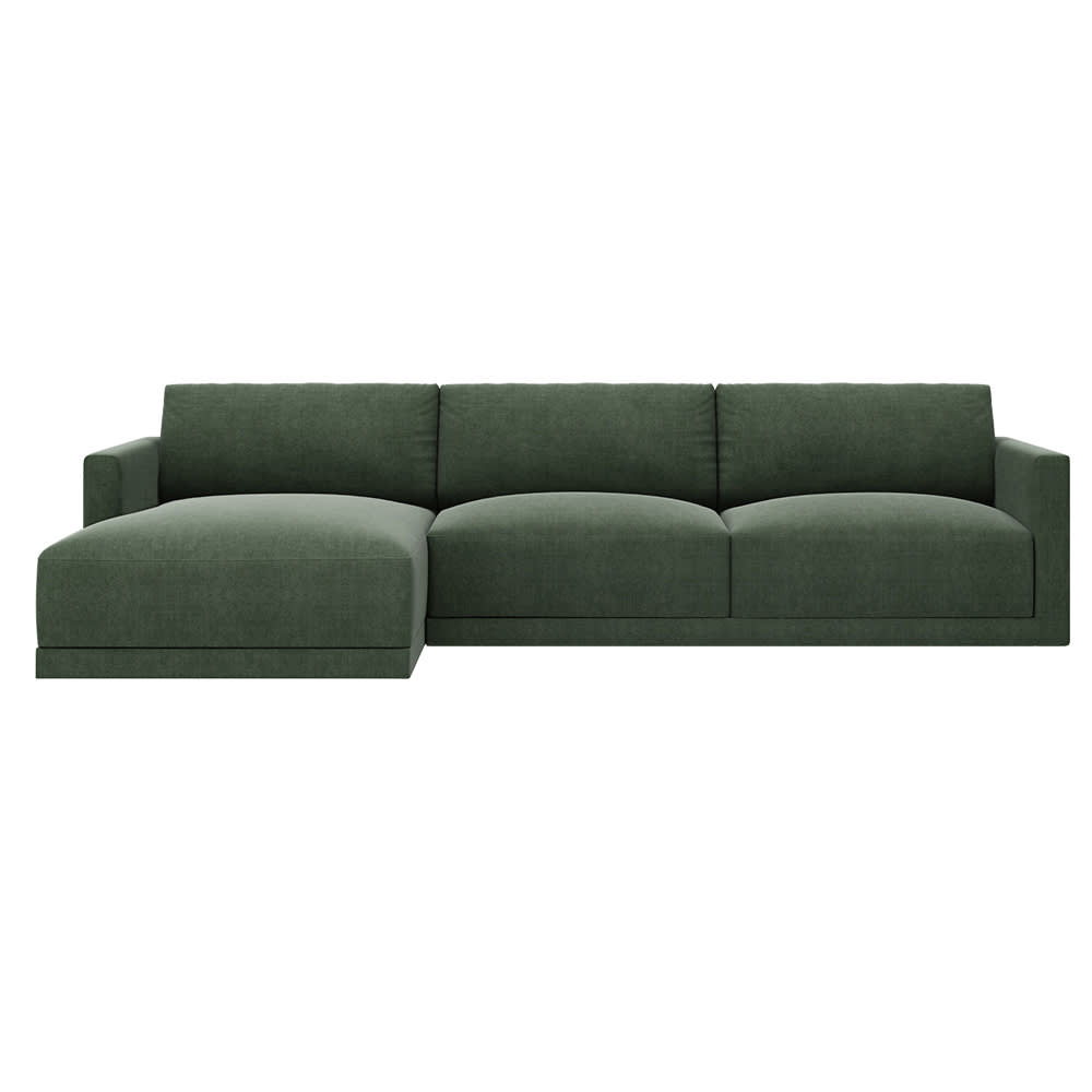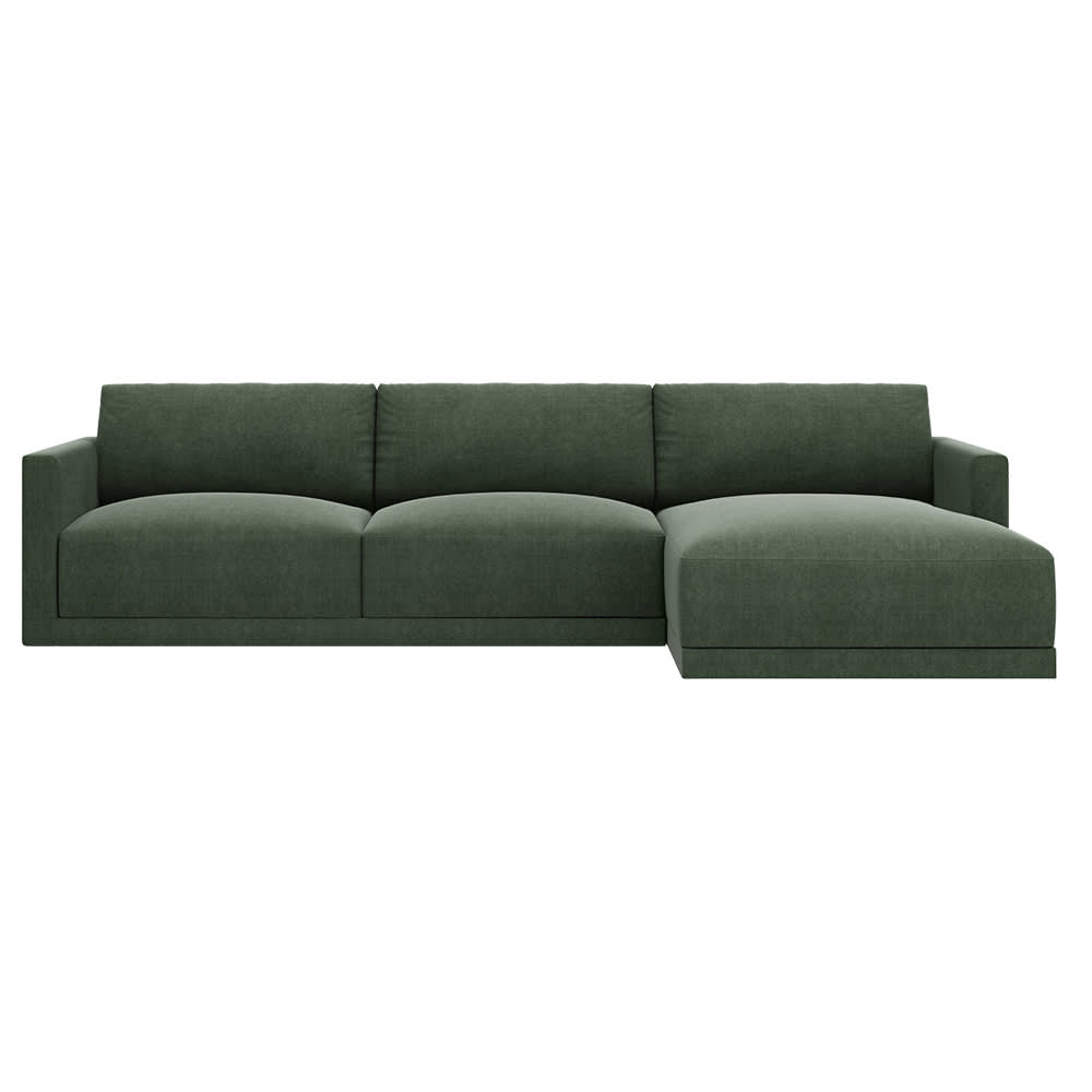 With a clean, modern take on a retro, mid-century design, the 3 Seater Haven Chaise in Forest is an incredible piece. A standout couch with a fresh contemporary design and comfort level that feels as good as it looks.When selecting the Chaise Side in the drop-down menu, please refer to the images to view Left Facing or Right Facing and look at it from the front which side the Chaise is on.